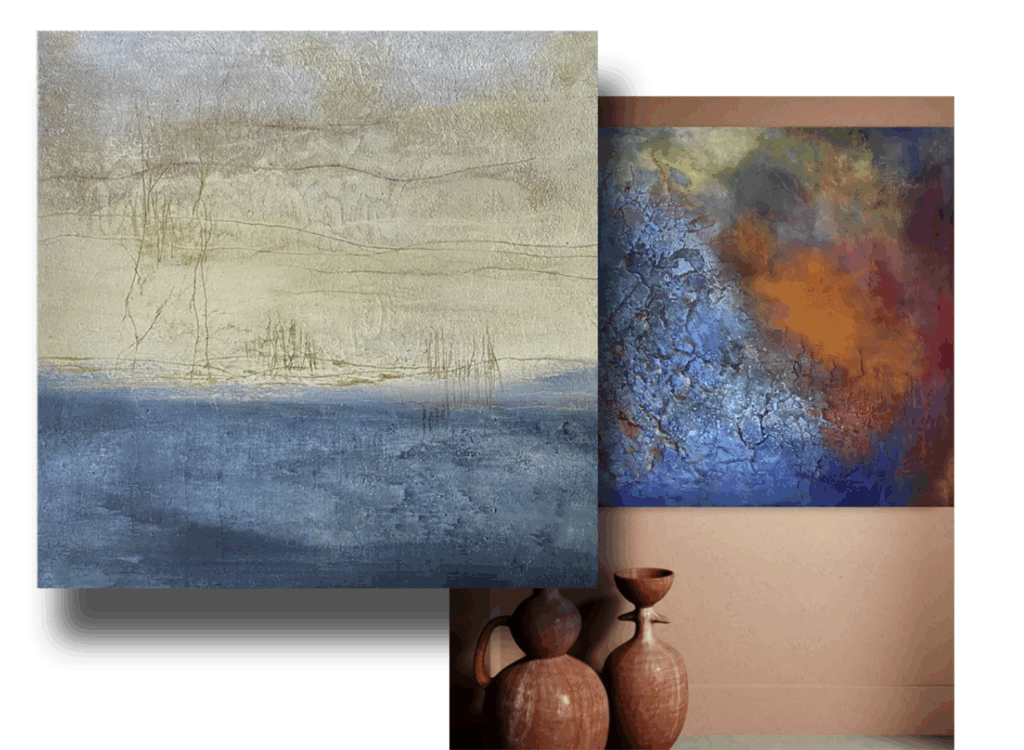 Perspektiven immer wieder neu zu denken, geht einher mit der Vorgehensweise im Abstrakten. Dabei sind Rest-Materialien wie Rost, Asche, Tuffgestein, diverse Fasern besonders schön zu nutzen und werden auf diese Weise auf ganz andere und neue Weise gewissermaßen wiedergeboren.